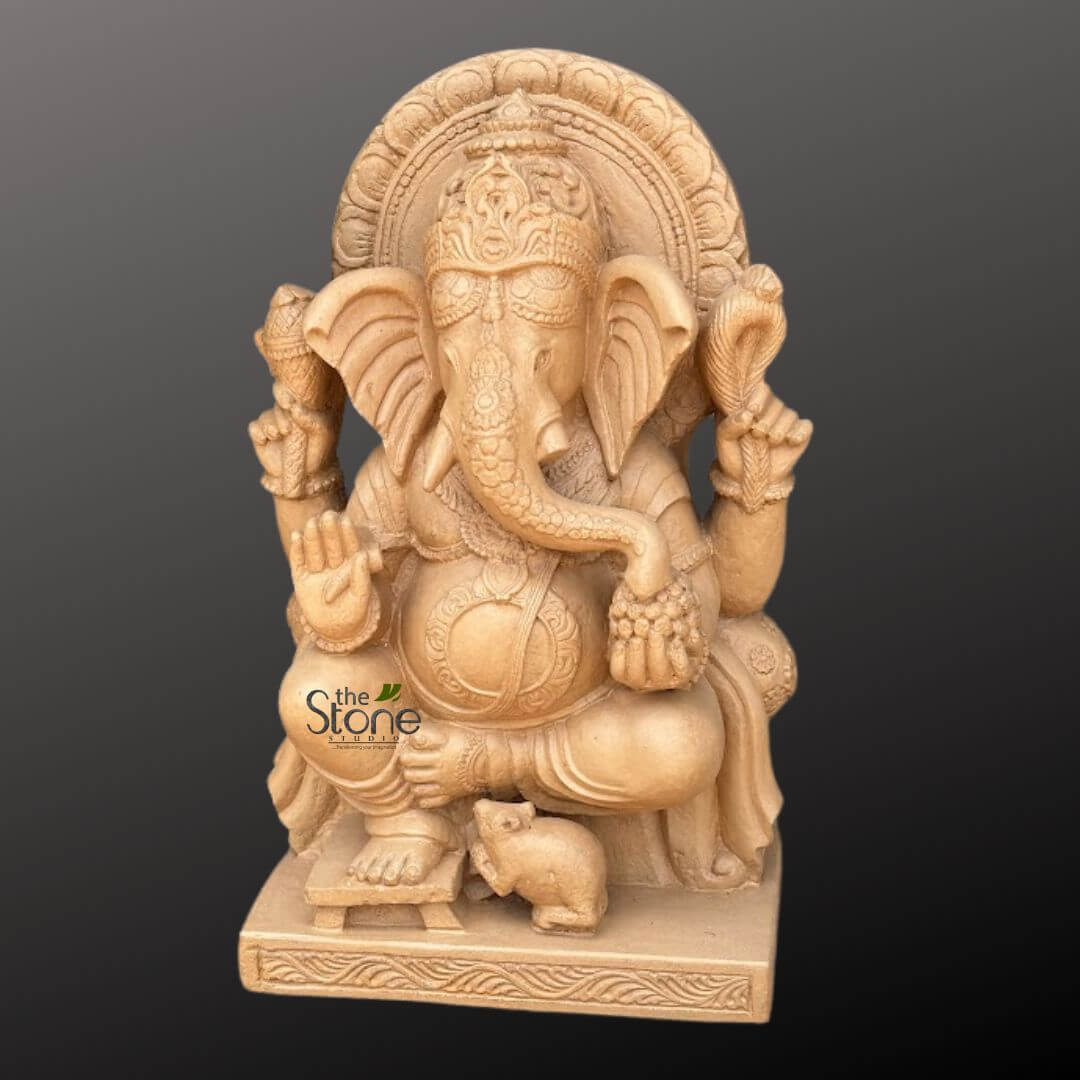 - Increasing visual interest: Unique Ganesh sculpture may give a remarkable feature to your garden or home while also being visually appealing. The statue can also be placed in temples or in a living room as a unique piece of art. Depending on the client’s own preference, the statue can be created on any stone by The Stone Studio (detailing may differ according to the stone and size).