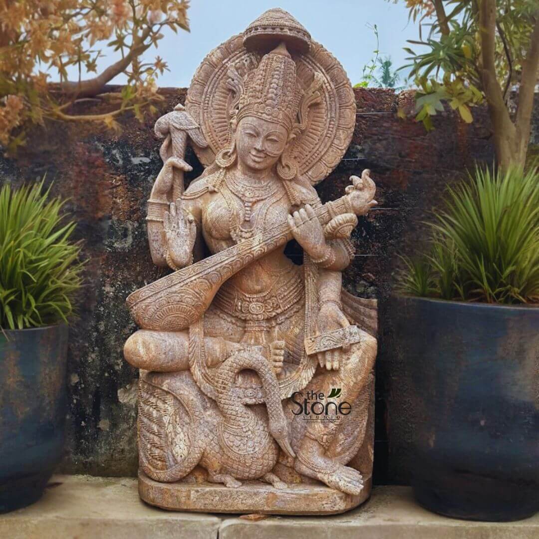 - The statue of Saraswati depicts the essence of the Hindu goddess beautifully.