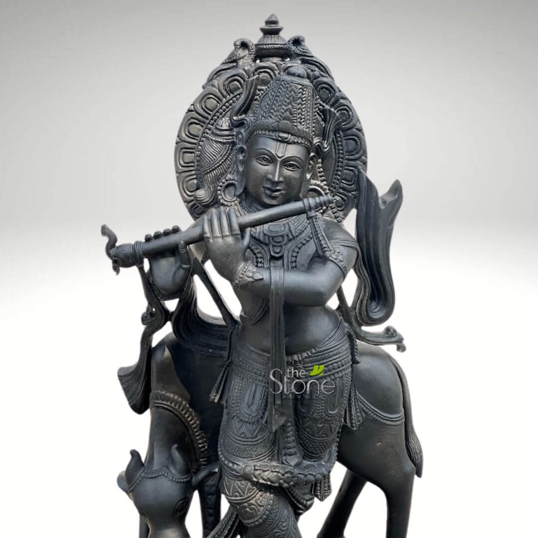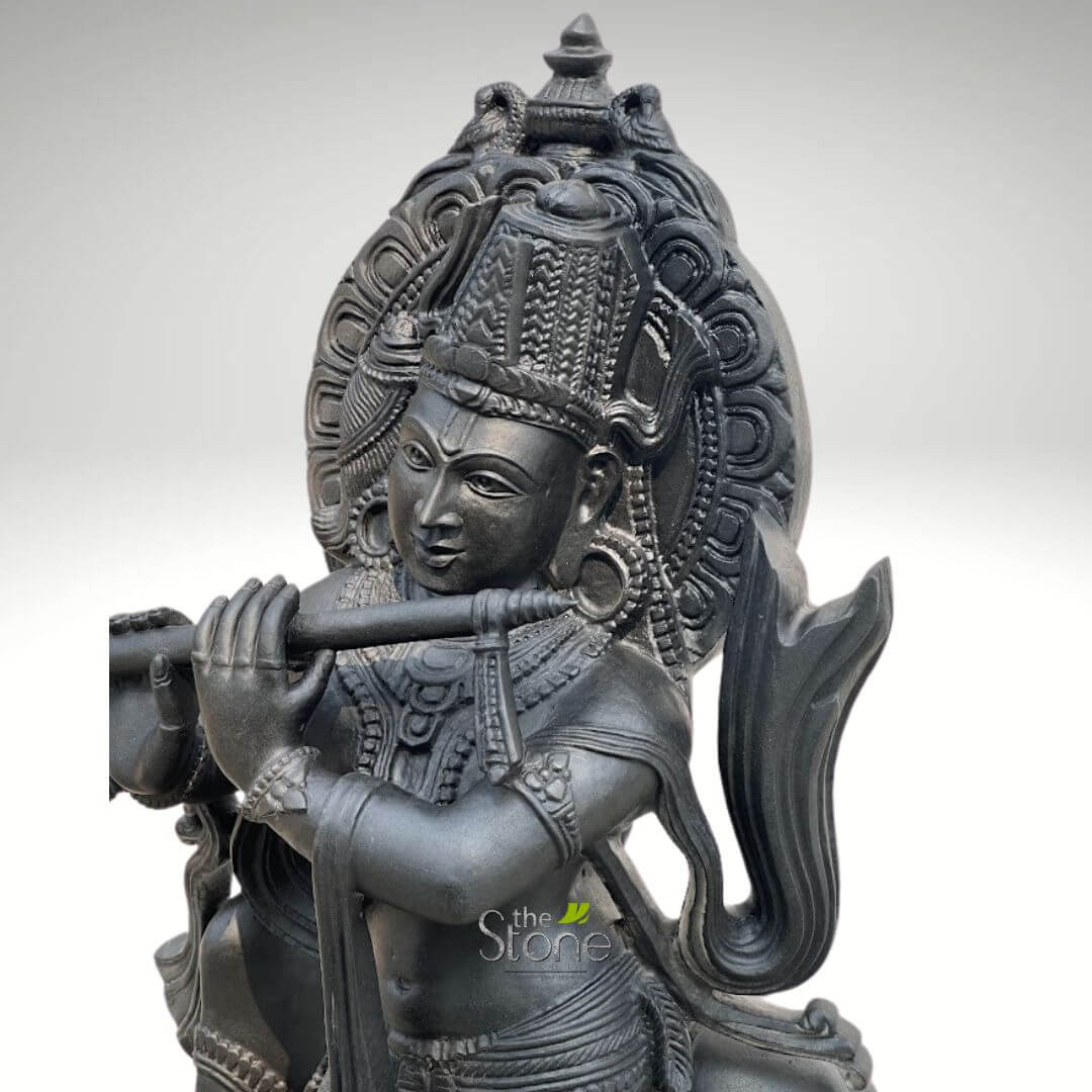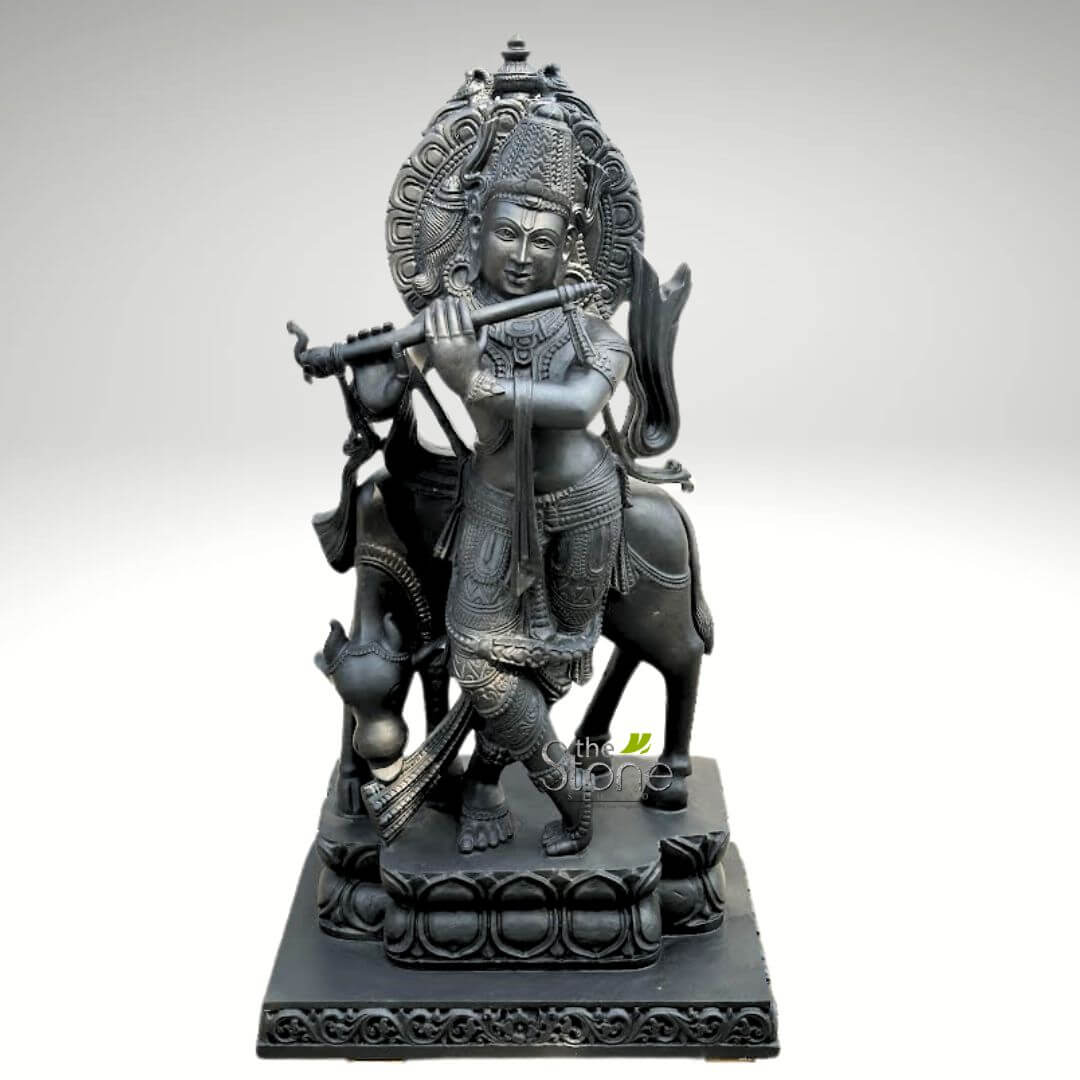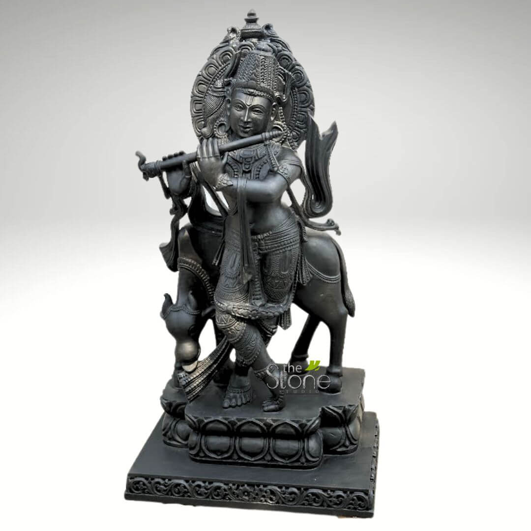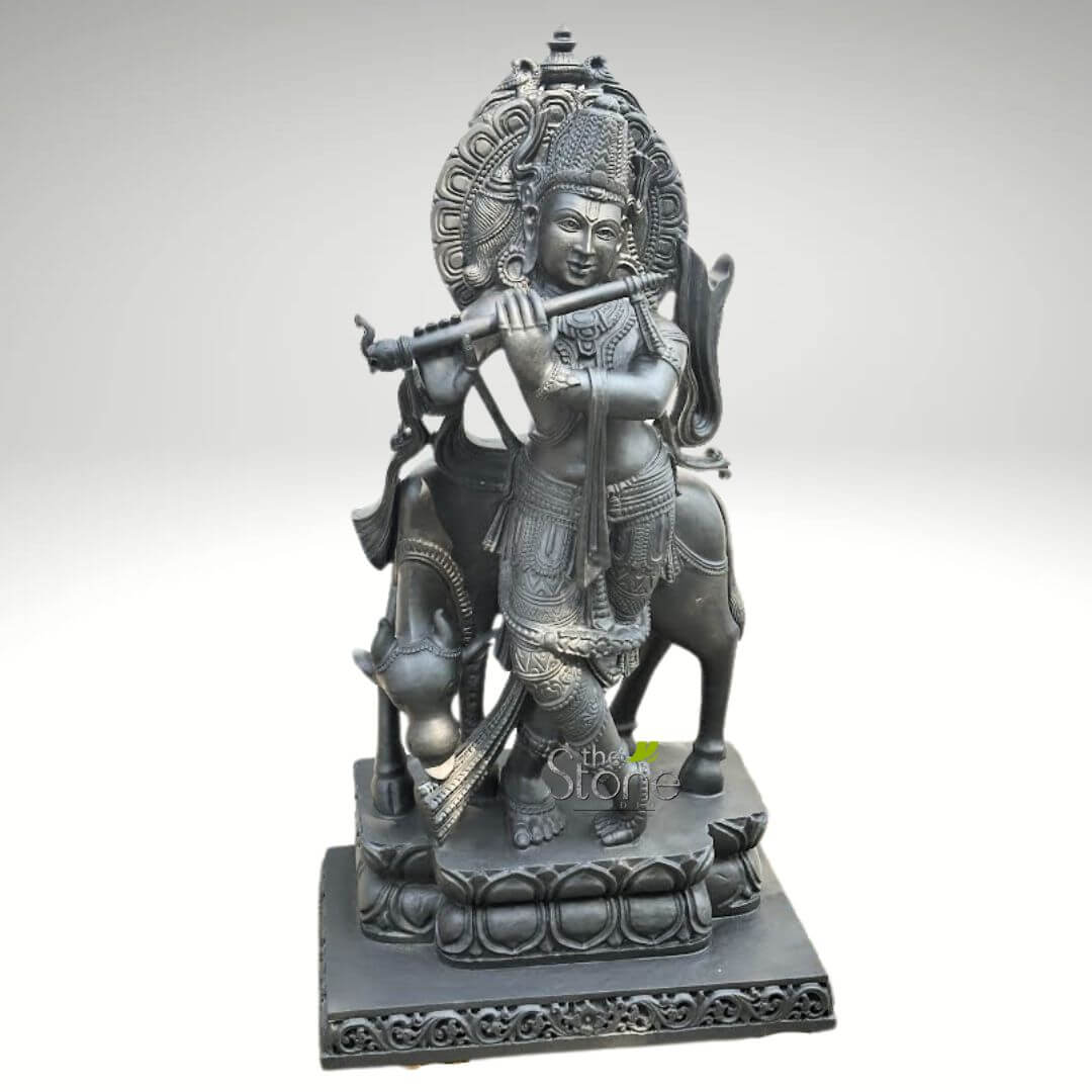 - Our 4.5 feet Black Granite Standing Krishna Statue is a beautiful piece with detailed carvings.