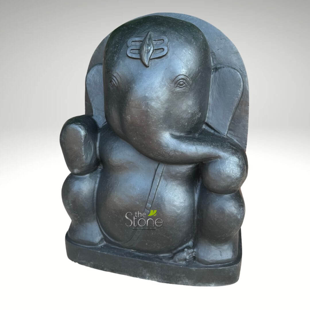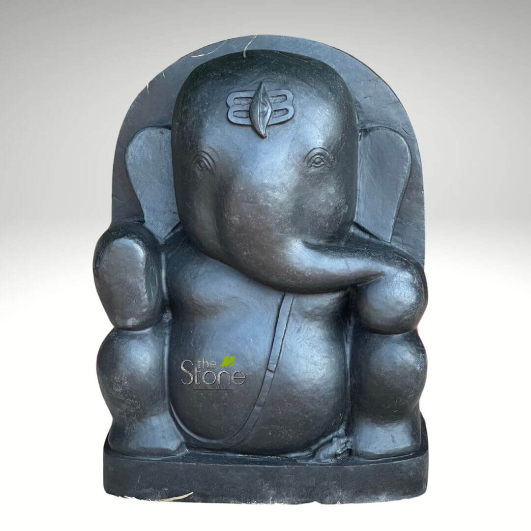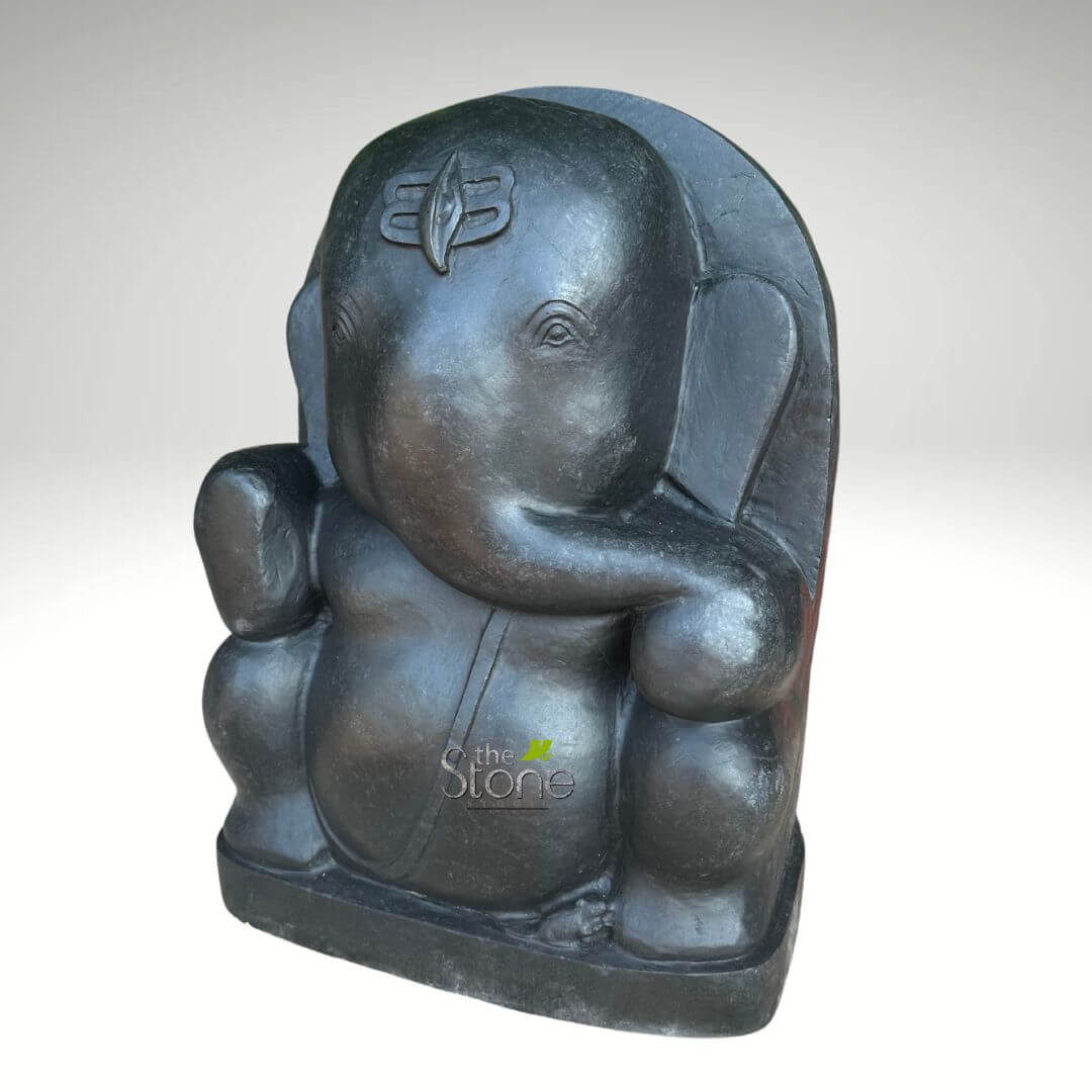 - This 2-foot Chintamani Ganesh statue is hand-carved from rich black stone.