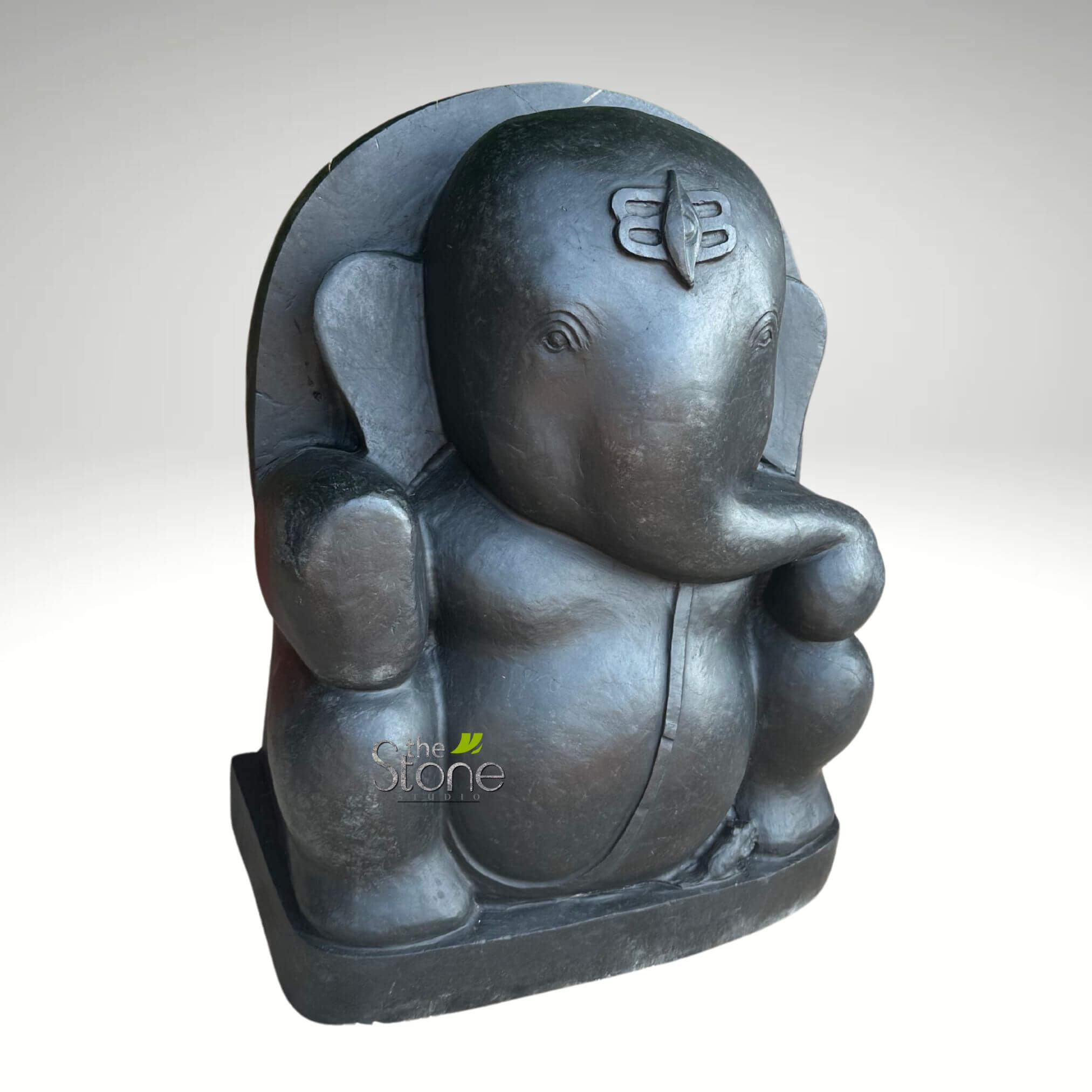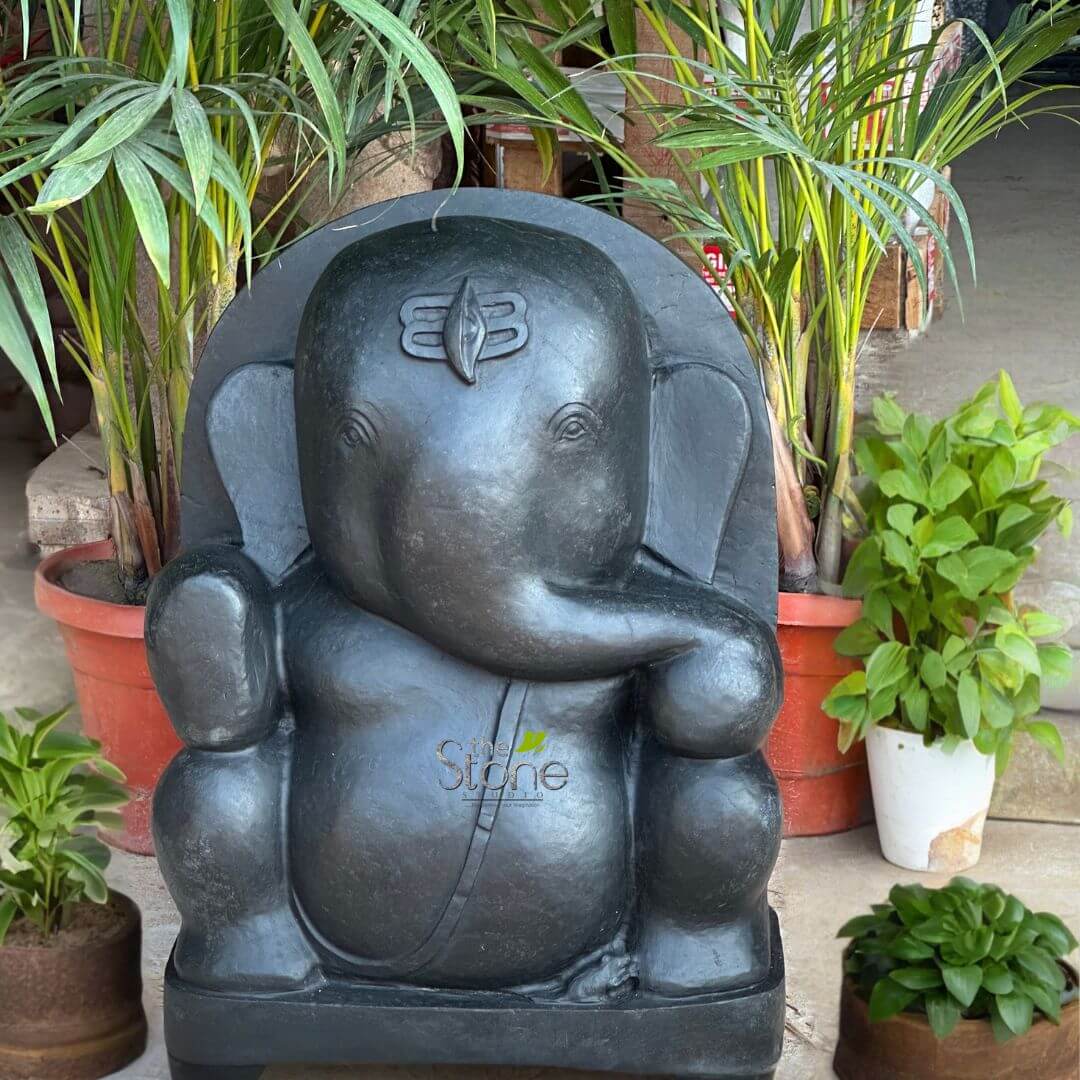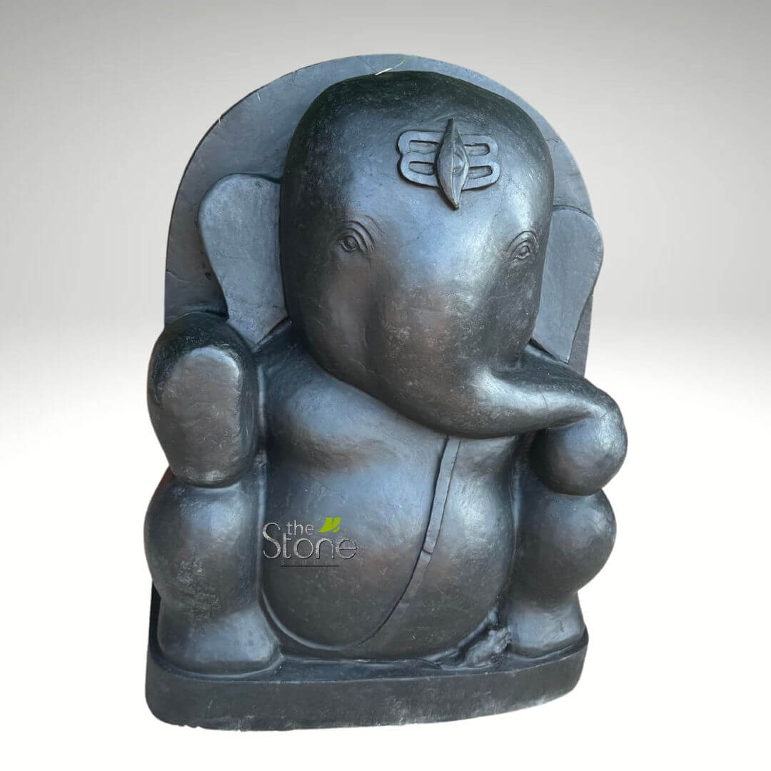 - This 2-foot Chintamani Ganesh statue is hand-carved from rich black stone.