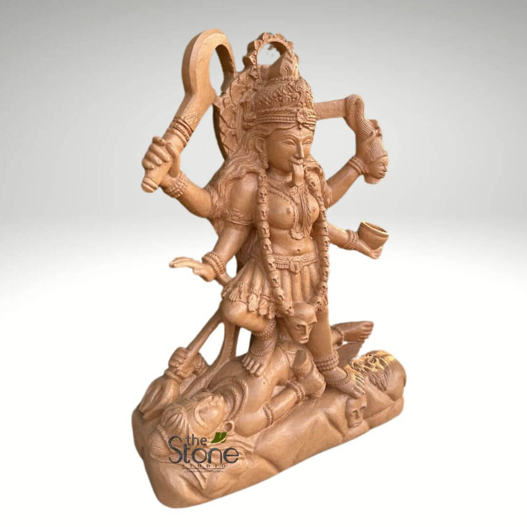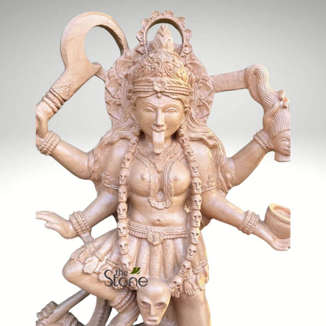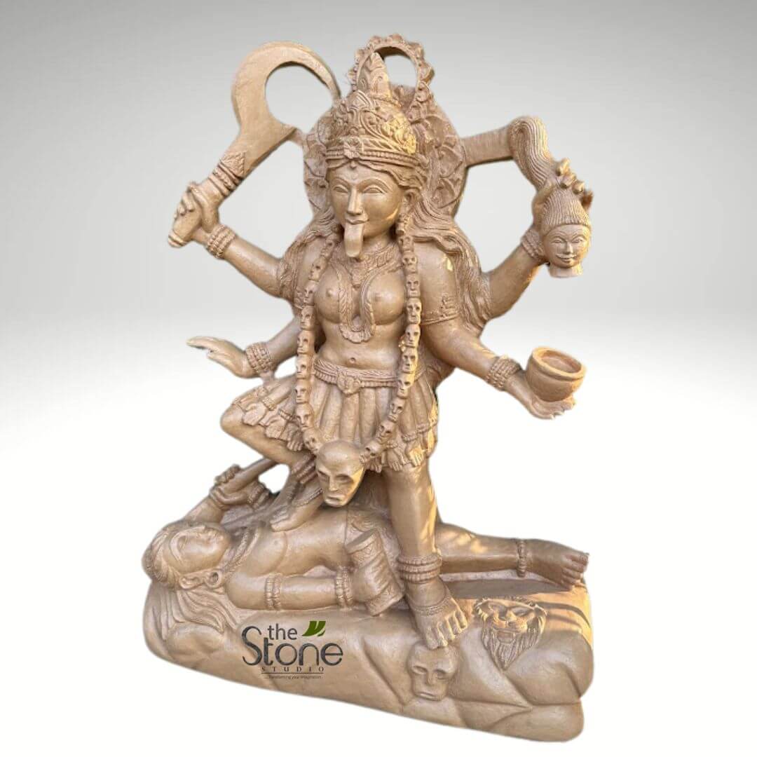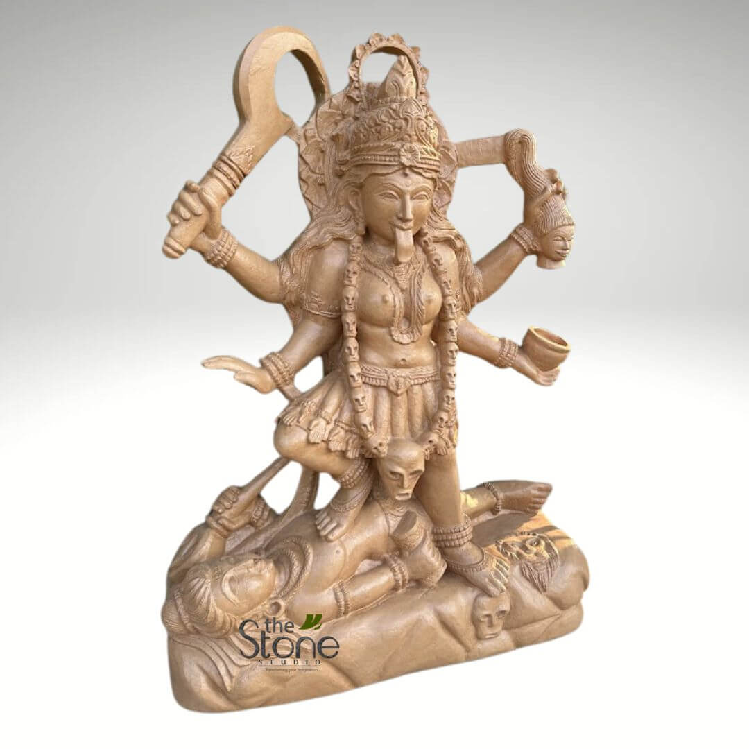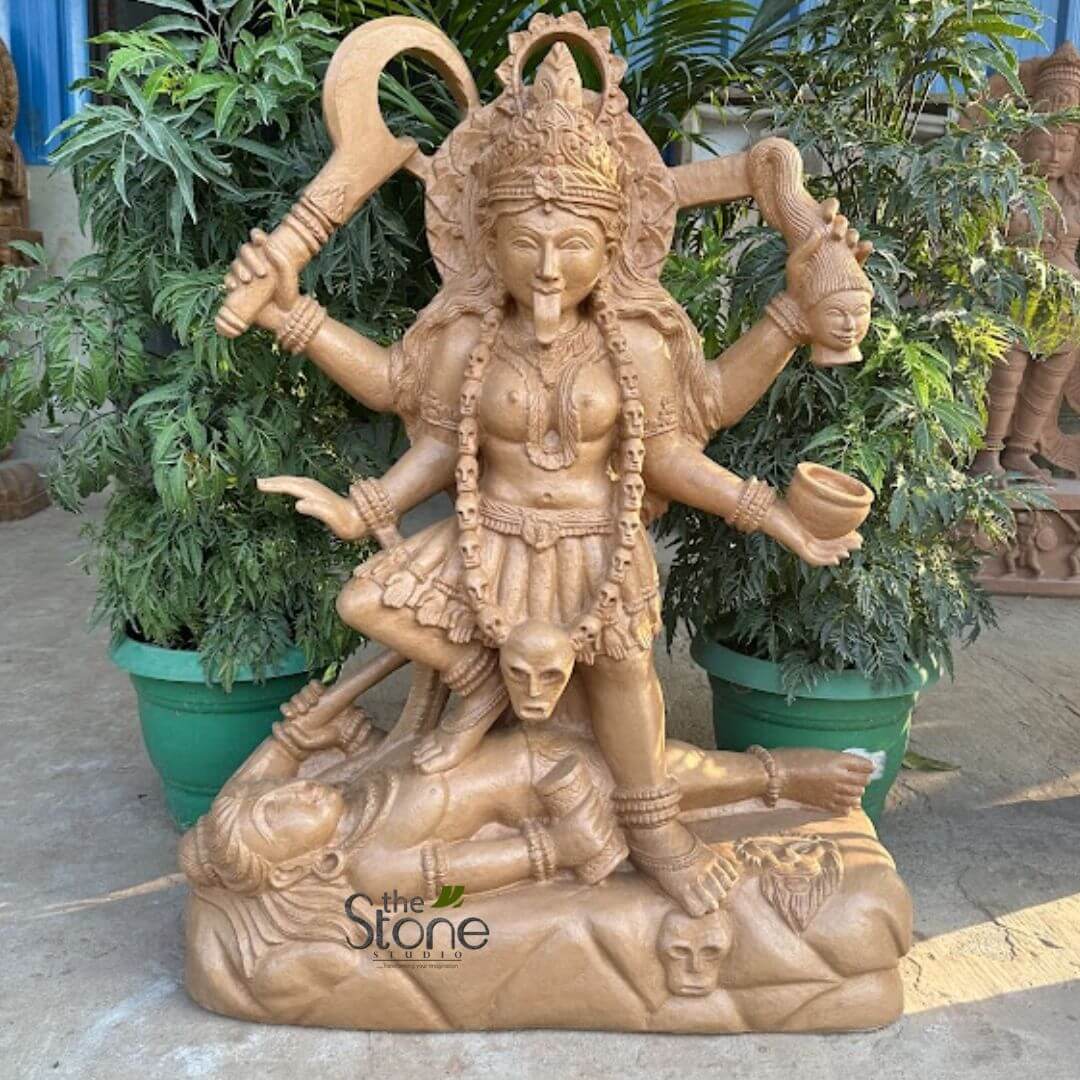 - This exquisite Maa Kali statue, intricately carved from brown sandstone, stands out as a rare and captivating creation.