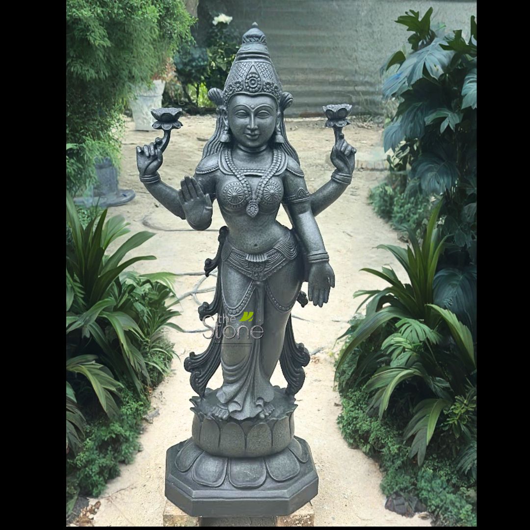 - Increasing visual interest: Unique Laxmi sculpture may give a remarkable feature to your garden or home while also being visually appealing. The statue can also be placed in temples or any outdoor setup as a unique piece of art. Depending on the client’s own preference, the statue can be created on any stone by The Stone Studio (detailing may differ according to the stone and size).