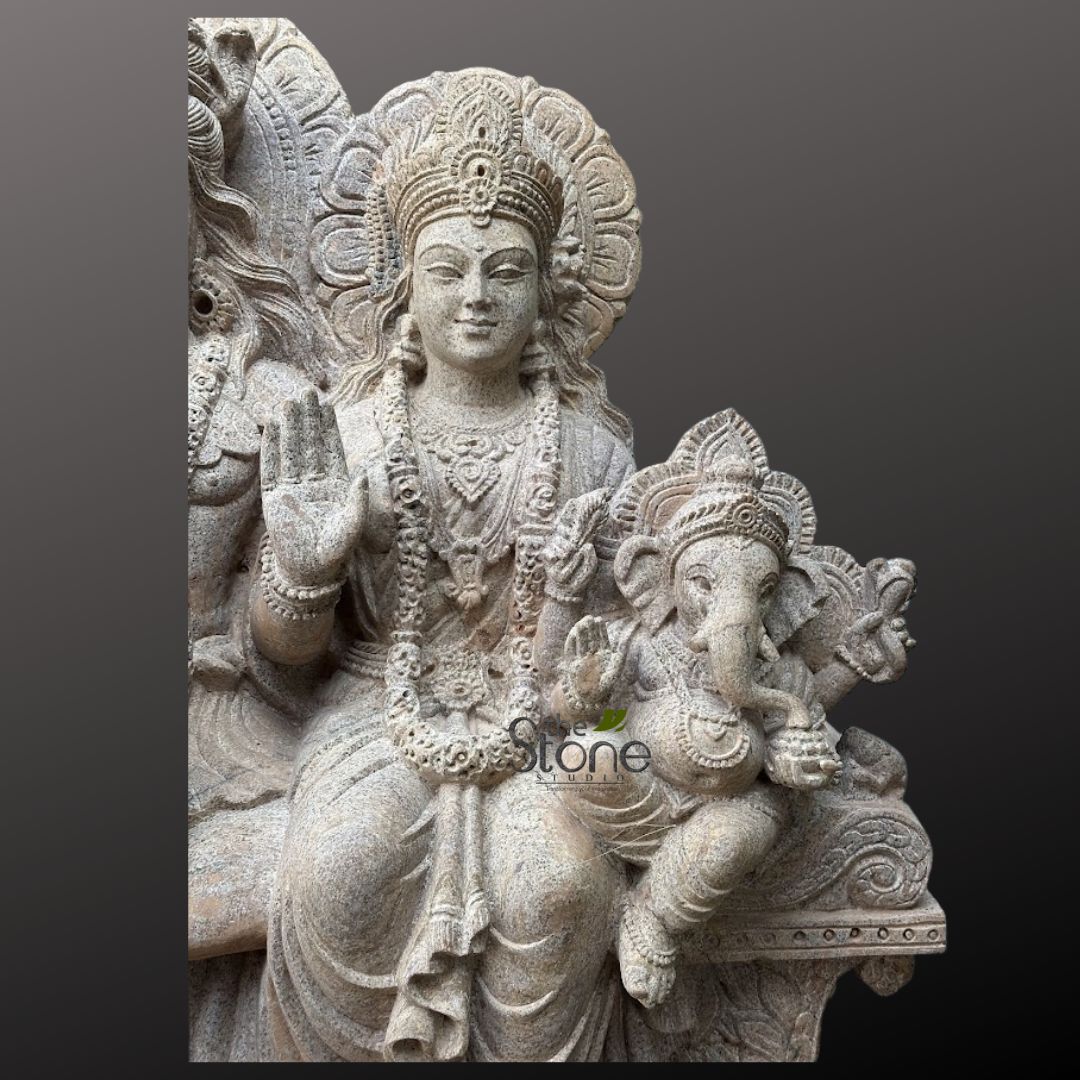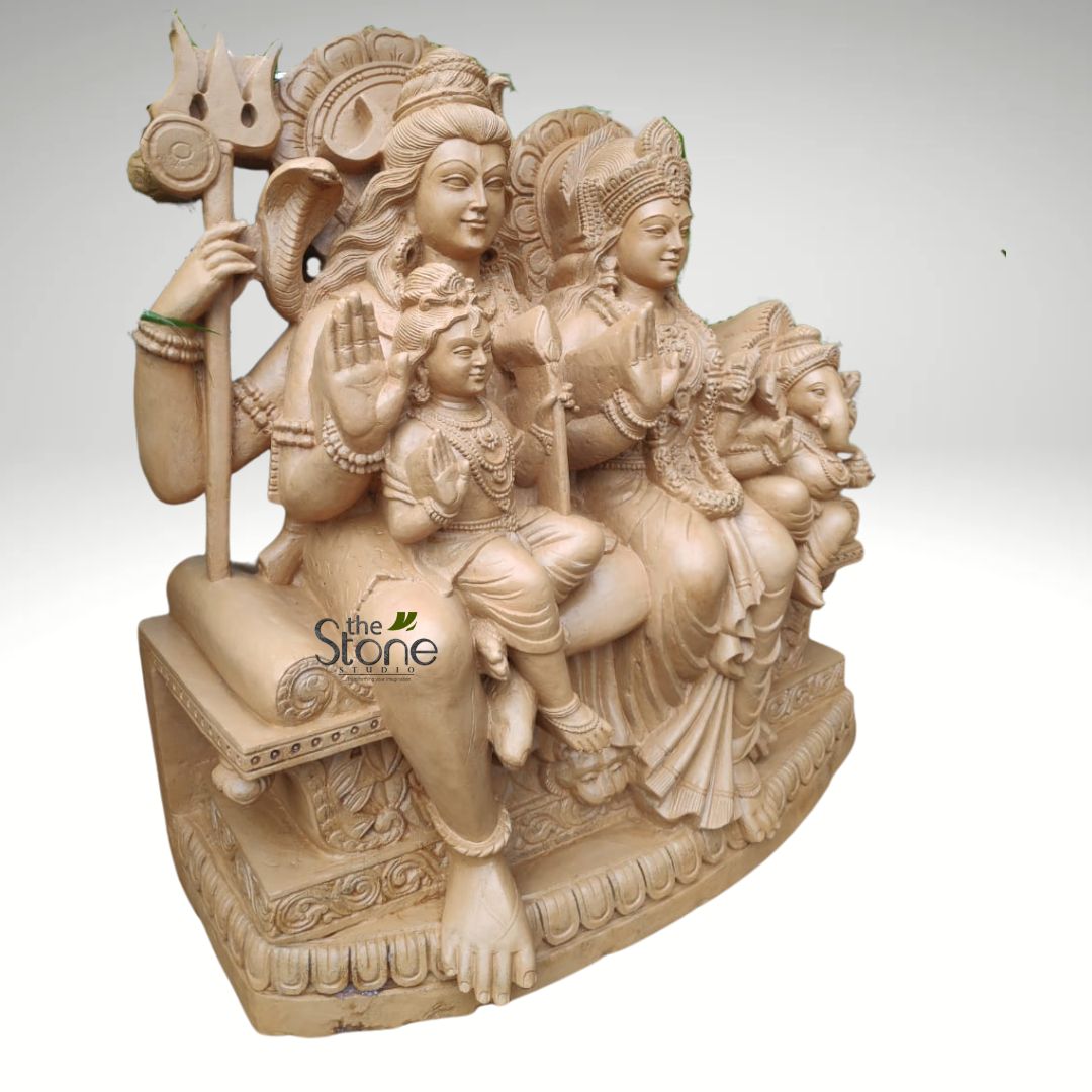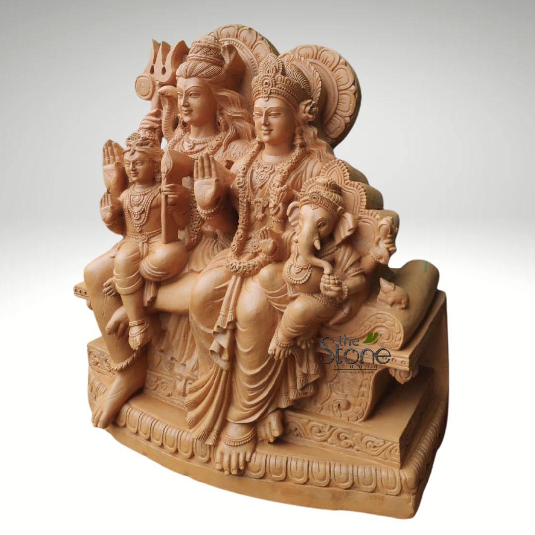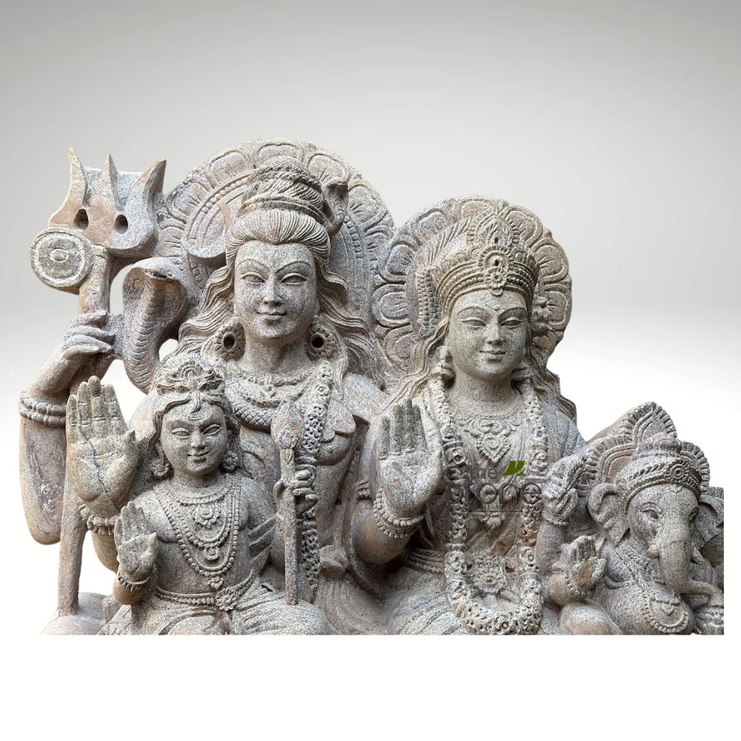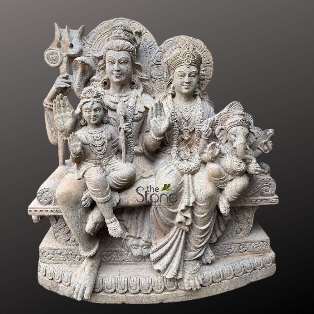 - Increasing visual interest: Shiv Parivar sculpture may give a remarkable feature to your garden or home while also being visually appealing. The statue can also be placed in temples or in a living room as a unique piece of art. Depending on the client’s own preference, the statue can be created on any stone by The Stone Studio (detailing may differ according to the stone and size).