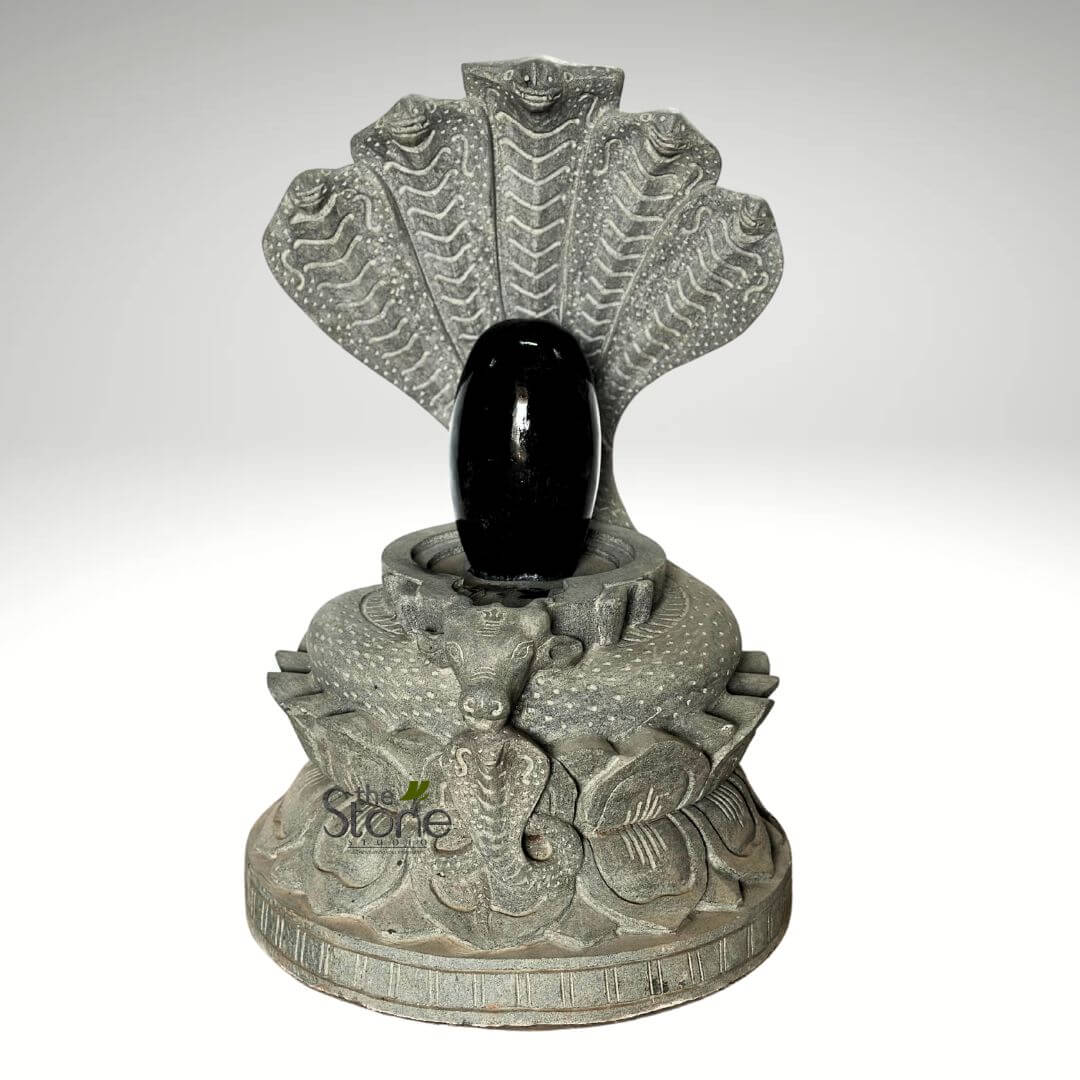 The material used in it is black stone. This sculpture is wonderfully crafted by our best artisans. For more such statues browse our website. If you still don’t get what you want, our artisans will craft your specified designs of the Shivalinga Statue with utmost care and love.
